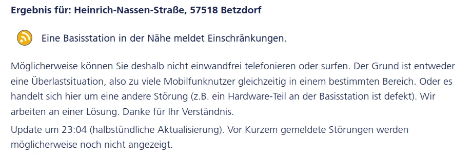 Es gäbe in Betzdorf noch eine weitere Basisstation, und zwar in der “Wilhelmstraße 3, 57518 Betzdorf”