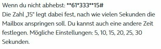 3. Wo kann man einstellen wie lange es dauern soll bzw. wievile Klingelzeichen es dauert bis die Mailbox anspringt.