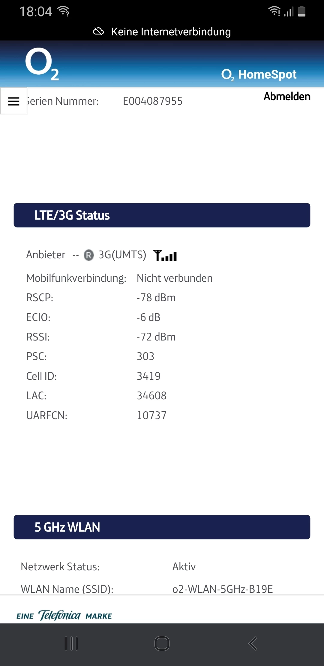 Der Homespot zeigt 3g an.