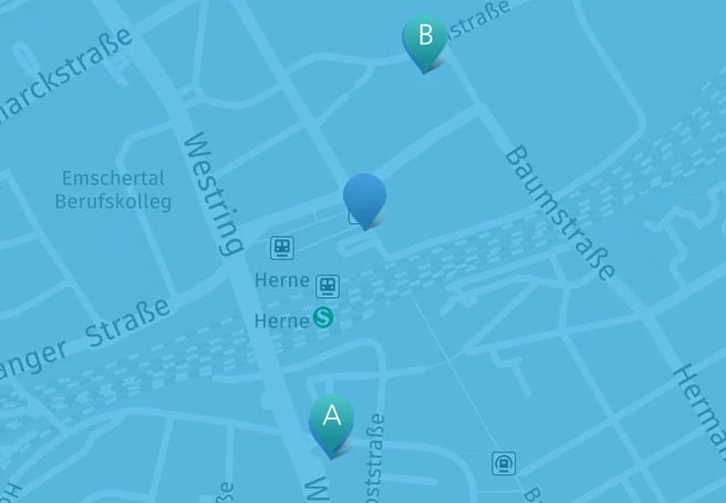 Ja, laut dem Livecheck meldet beispielsweise die Station “Von-der-Heydt-Straße 39, 44629 Herne” (bei “A”) gerade Einschränkungen:
