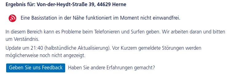 Ich habe btw beim Störungsmelder immer nur die PLZ eingegeben und bekam daher die Antwort, dass alles in Ordnung sei. Hätte ich vielleicht mal etwas konkreter suchen sollen 😅.