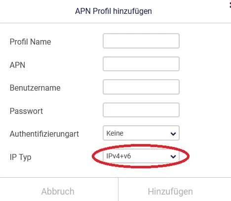 Hast Du auch bei den APN-Einstellungen NUR IPv4 gewählt?