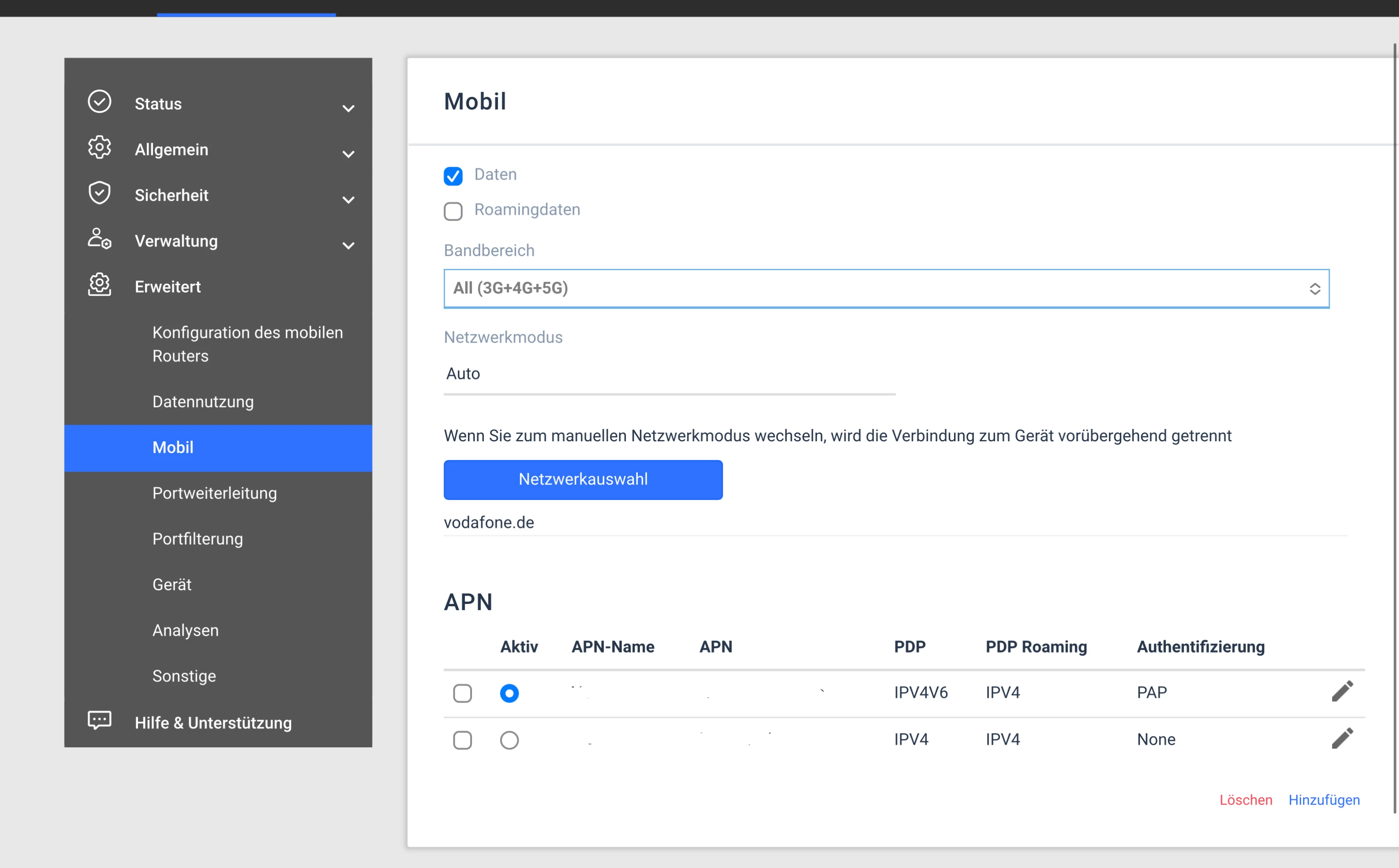 wie sind die Mobilendaten eingestellt?