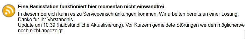 Da dein Account mit deinem Datensatz bei uns verknüpft ist, konnte ich einmal nachschauen, wie es aktuell an deiner Adresse aussieht und eine Basisstation funktioniert derzeit leider nicht einwandfrei.