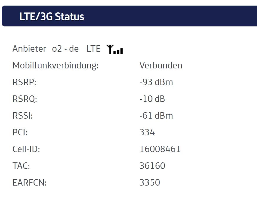 Meine Frage wäre, gibt es da etwas, um die Verbindung besser zu messen und stabiler zu kriegen? Ich glaube die RSRP ist nicht ganz optimal.