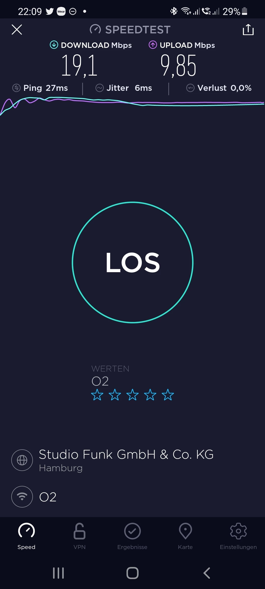 @o2_Dennis  Abends bricht die Datenrate stark ein. Tagsüber fast 100 MBit abends 3 ... komisch..