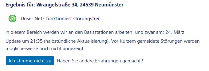 Hallo @Tom_  ich habe bereits widerrufen. O2 hat hier nur die Zellen auf LTE aufgerüstet aber keine Kapaziäten Erweiterung vorgenommen. Im Zentrum einer 80.000 Einwohner Stadt Zellen mit Richtfunk zu betreiben , direkt an einer Bahnstrecke recht ungünstig.