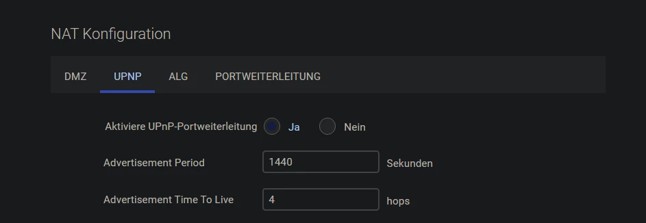 auch wenn ich versuche in einer Anwendung UPNP zu verwenden läd es unabhängig von der Anwendung immer sehr lange und die Ports sind danach immer noch nicht von außen zu erreichen.