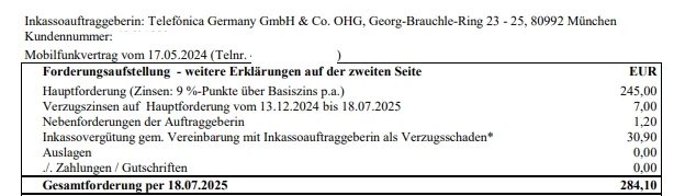 ich habe erstmal eine Forderung vom Inkasso erhalten. danach habe ich mich direkt an den Inkasso-Service gewendet , wurde mir mitgeteilt, dass es sich dabei um die nicht zurückgesendete Hardware (Router) handelt.