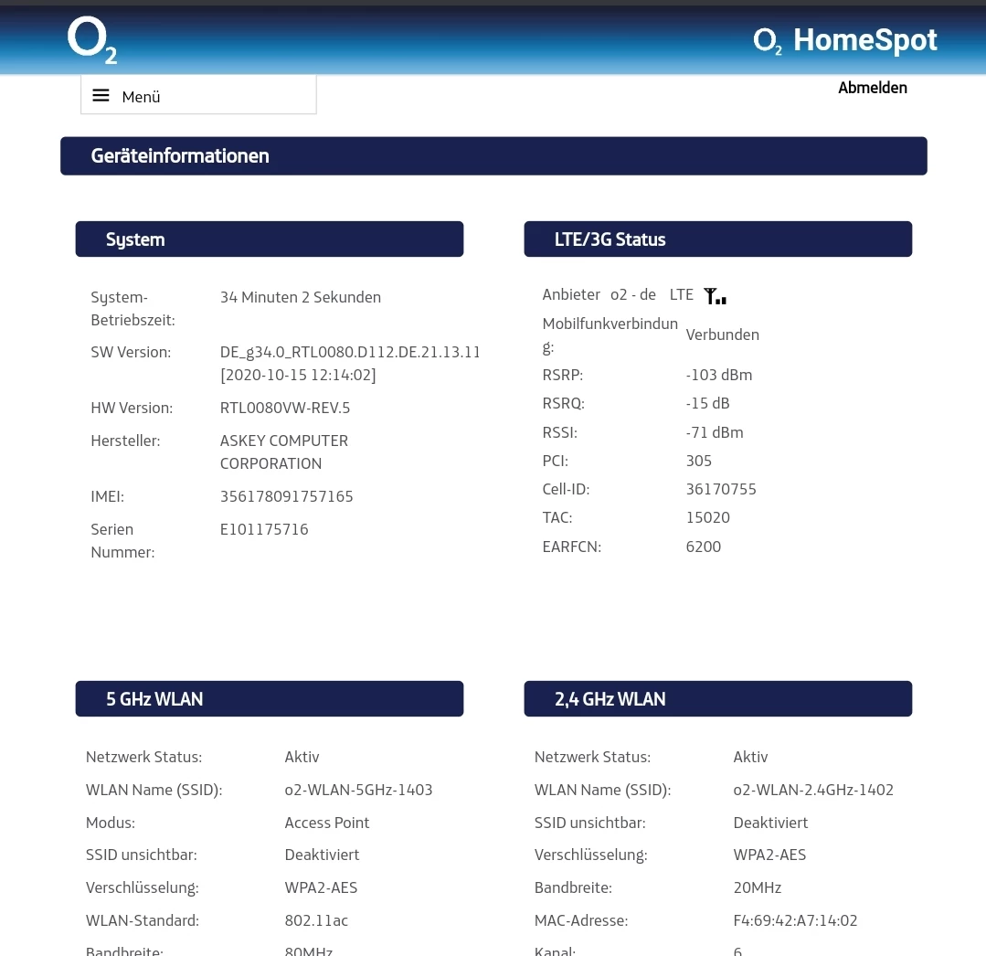 Dein Homespot nutzt aktuell die eNodeB 141292