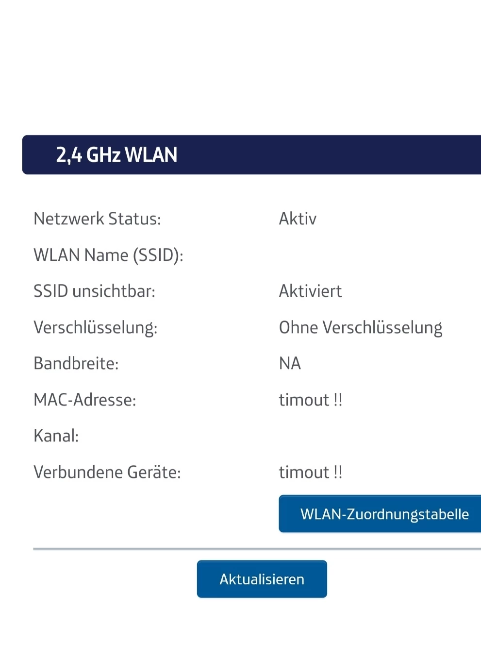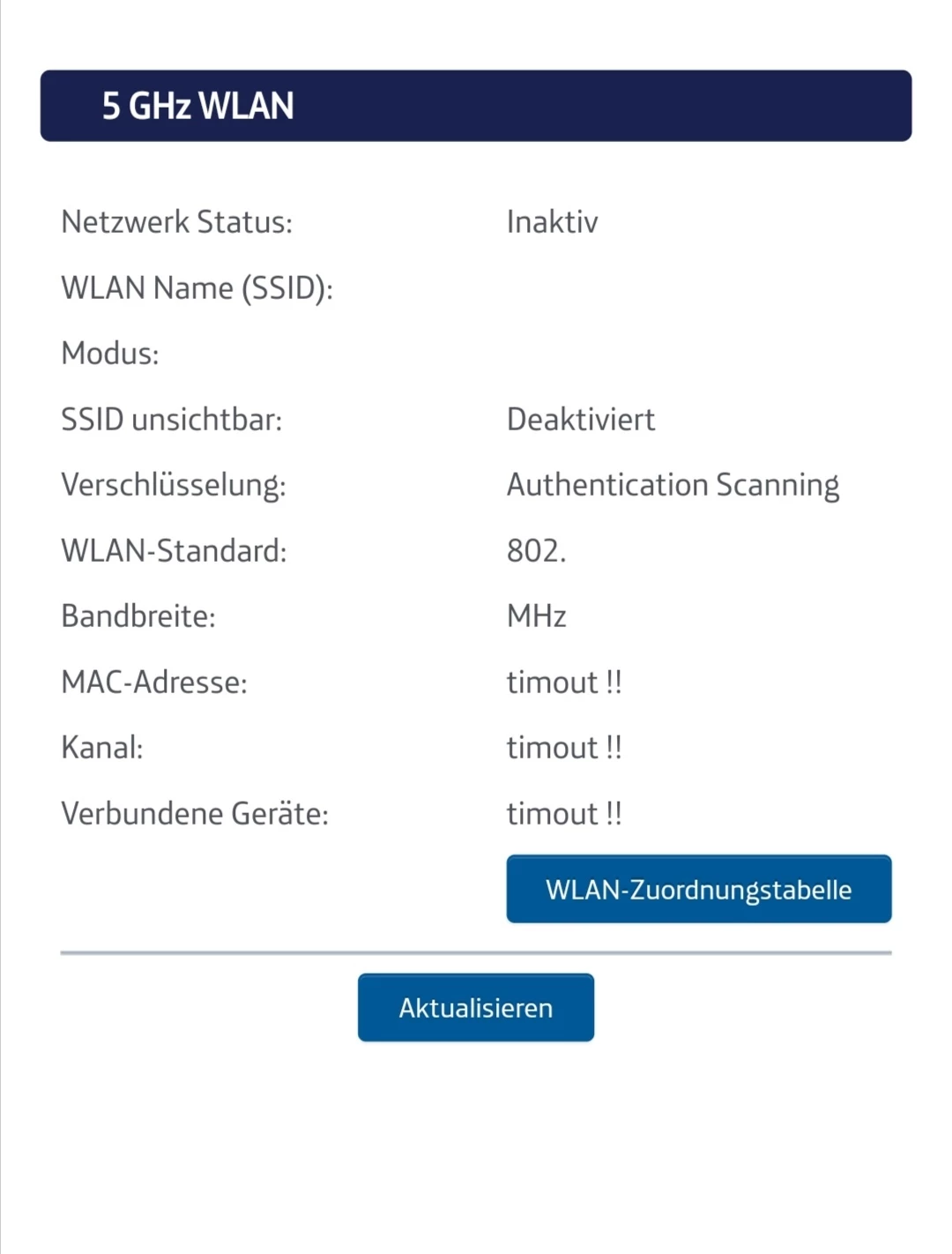 Die König Seite des Spot hat keine Daten mehr zu 2,4Ghz und 5Ghz Netz, die Anzeigen sind leer!