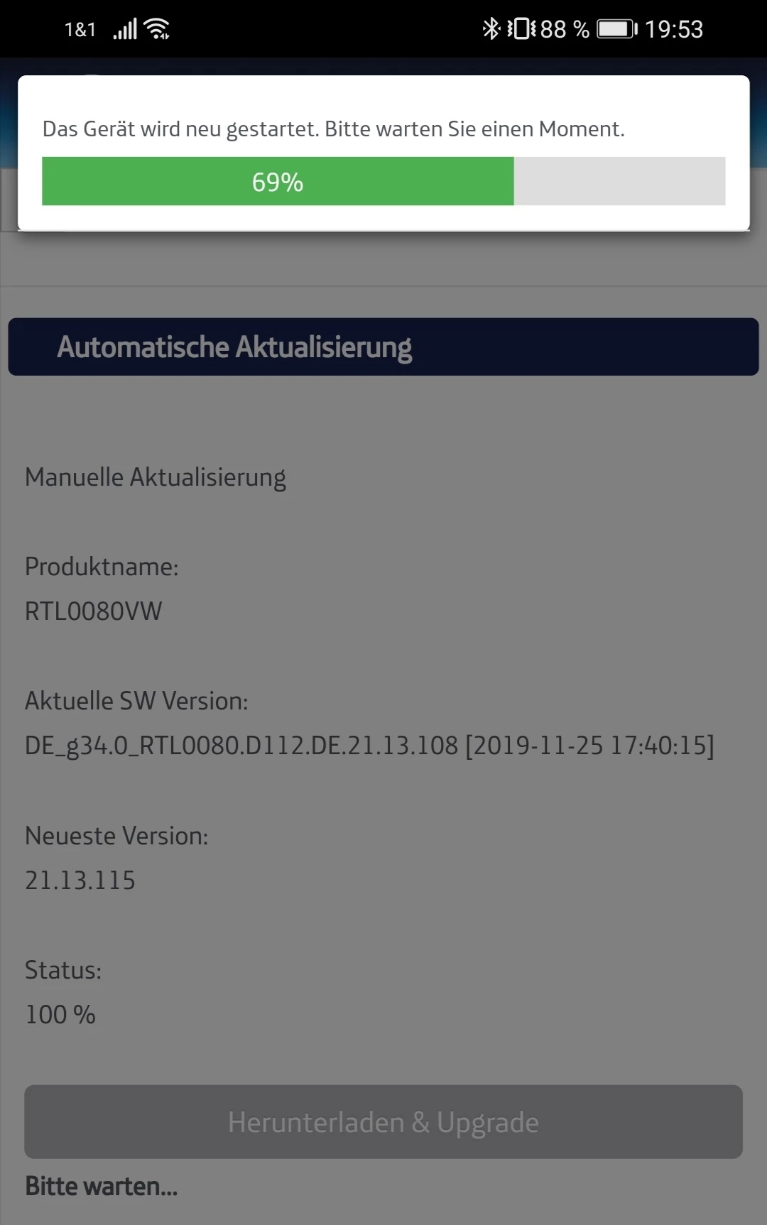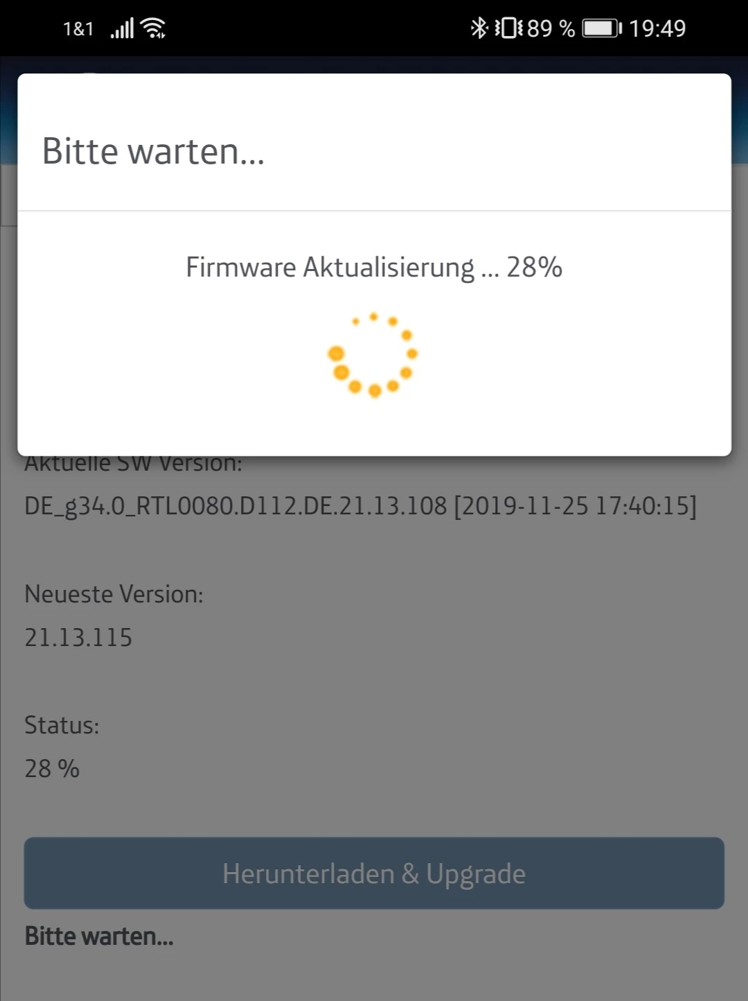 Seitdem habe ich die alte Firmware drauf, die sich weder manuell, noch automatisch ändern lässt. Auch ein separates herunterladen der Firmware, auf Android Handy oder Windows PC, und dann installieren, schlägt fehl!