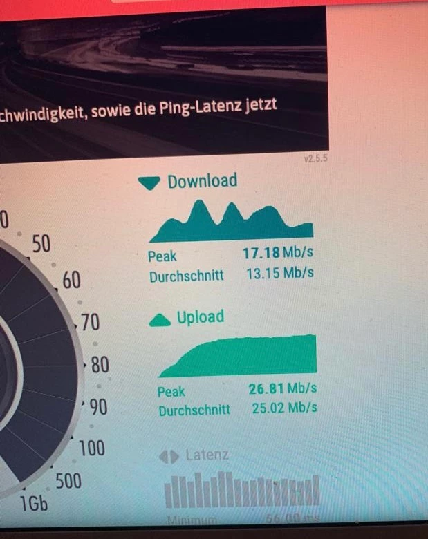 Anbei ein paar Screenshots. Problematisch sehe ich den ständig wechselnden Verlauf beim Download (Sonntag Abend 22:30 Uhr), während der Upload absolut passt. Könnte es sein, dass der Homespot defekt ist? Das WLAN ist sehr schwach, außerhalb des 1. Zimmers kaum zu empfangen…