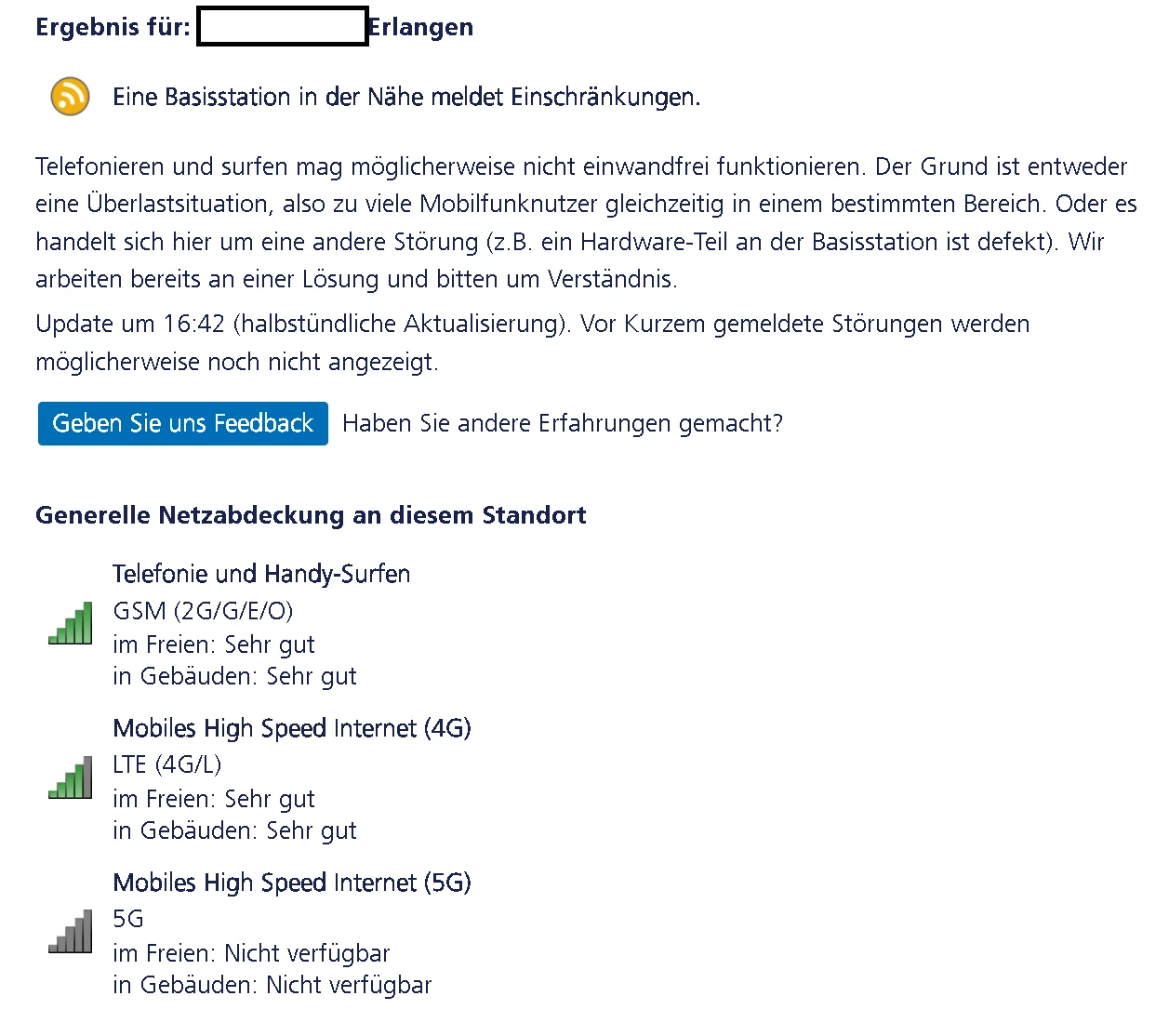Eine Basisstation in der Nähe meldet Einschränkungen.