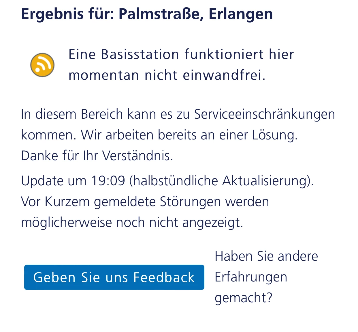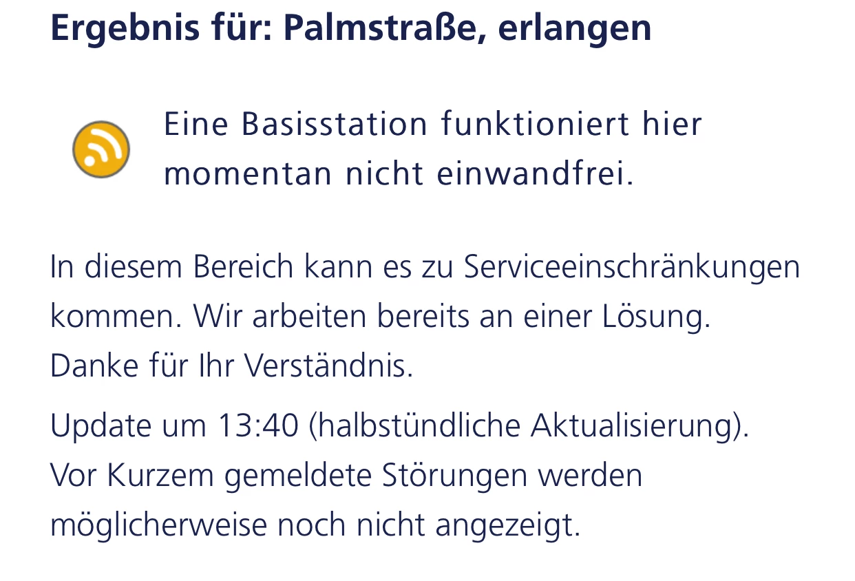 Die Störung der Basisstation geht jetzt schon wie lange?
