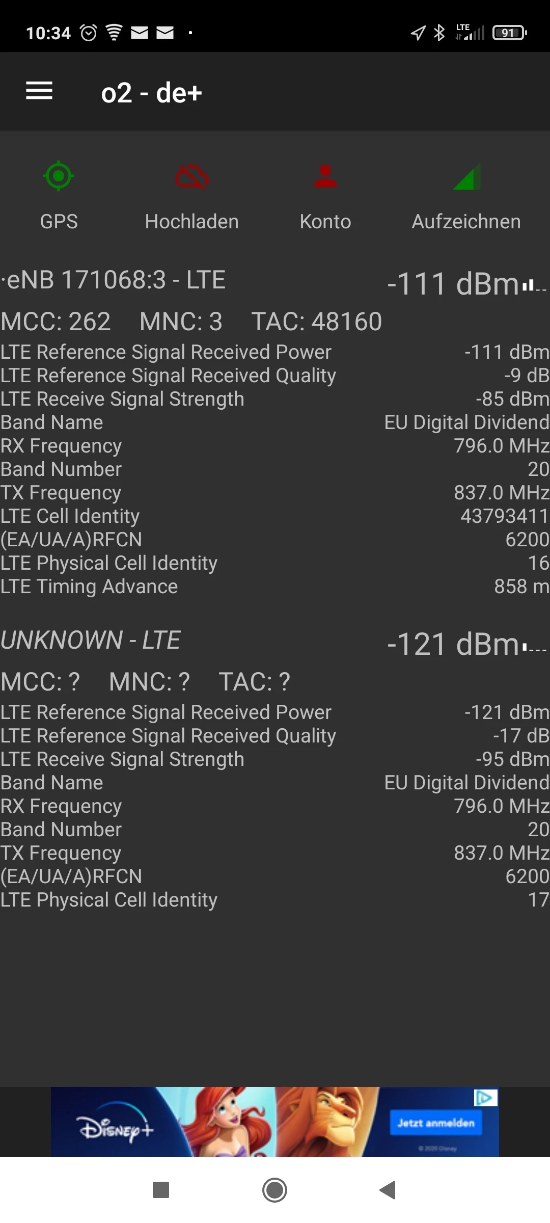 In diesen Fall: laut Livecheck keine Überlastung, allerdings erkennbarer schlechter RSRQ: