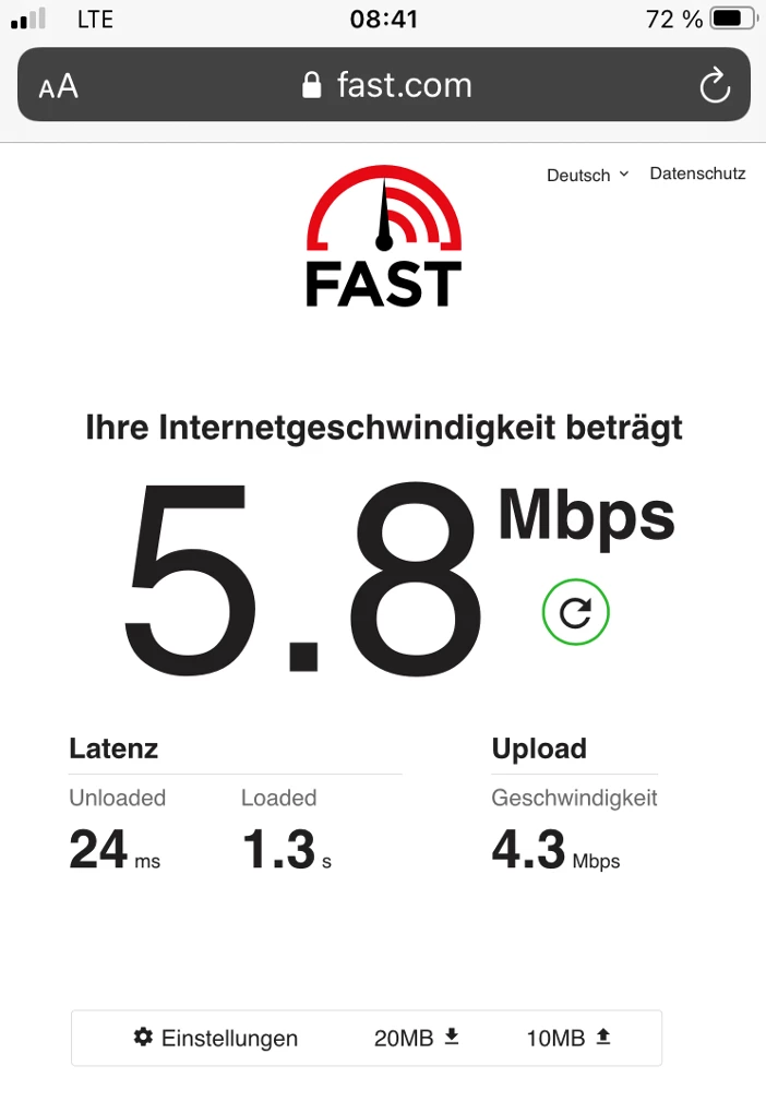 Hallo @Gmo, hier ein Screenshot von den Downloadraten mit dem Smartphone. Ich muss dazu sagen, dass das Handy über Congstar und nicht über o2 läuft (habe mich nicht mit dem WLAN verbunden und einfach mal LTE gemessen)… Soll ich dasselbe nochmal im WLAN, also mit HomeSpot messen?