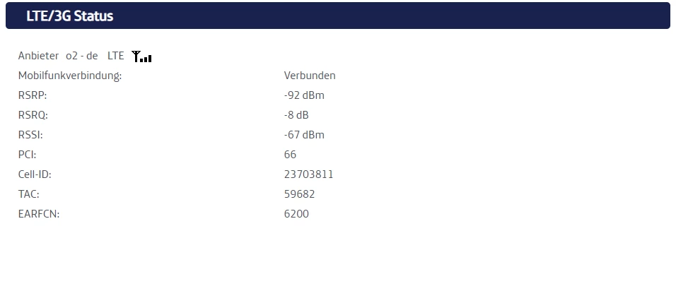 Hmmm, perfekter Empfang ist das nicht. Perfekt wäre vielleicht ein RSRP von -72dBm und ein RSRQ von -3dBm.