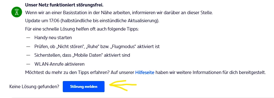 Ein Tipp: Nach Abfrage im LiveCheck kannst du auch selber eine Störung melden, dann prüft unsere Technik deinen Standort individuell auf Einschränkungen
