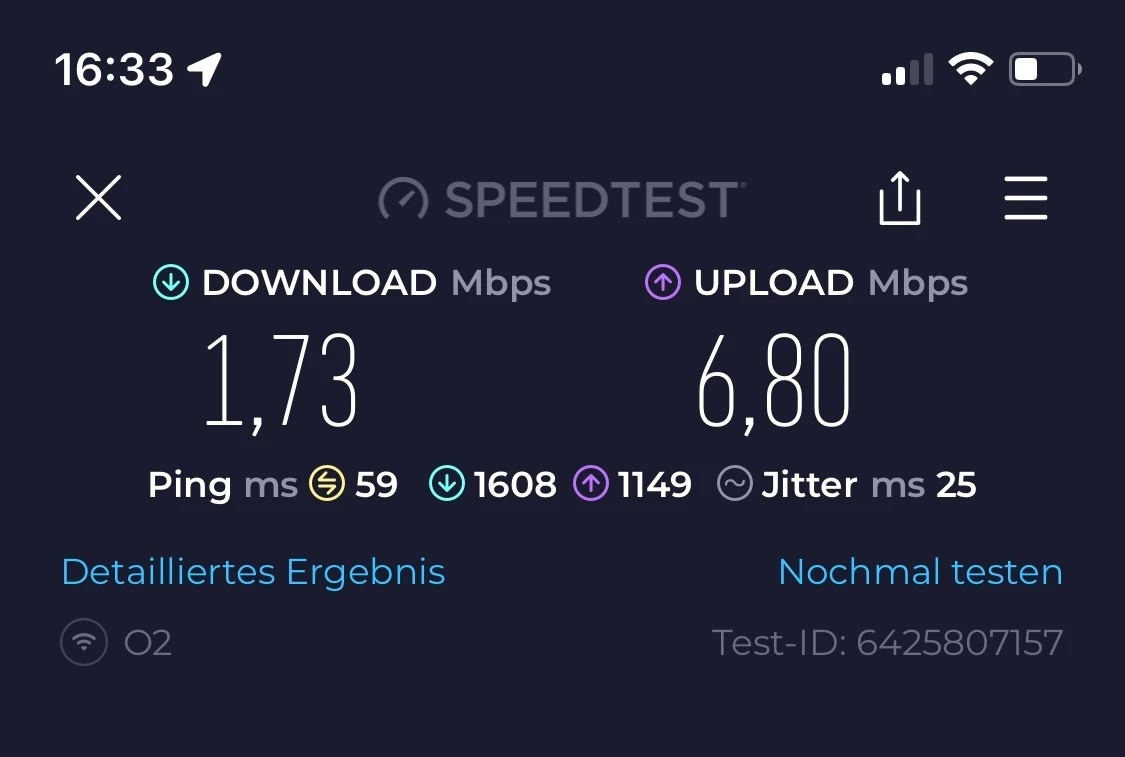 @o2_Bianca kurzes Update: weiterhin keine Verbesserung und wieder nur zwischen 0,5 und 3 MBit (am Wochenende auch tagsüber).