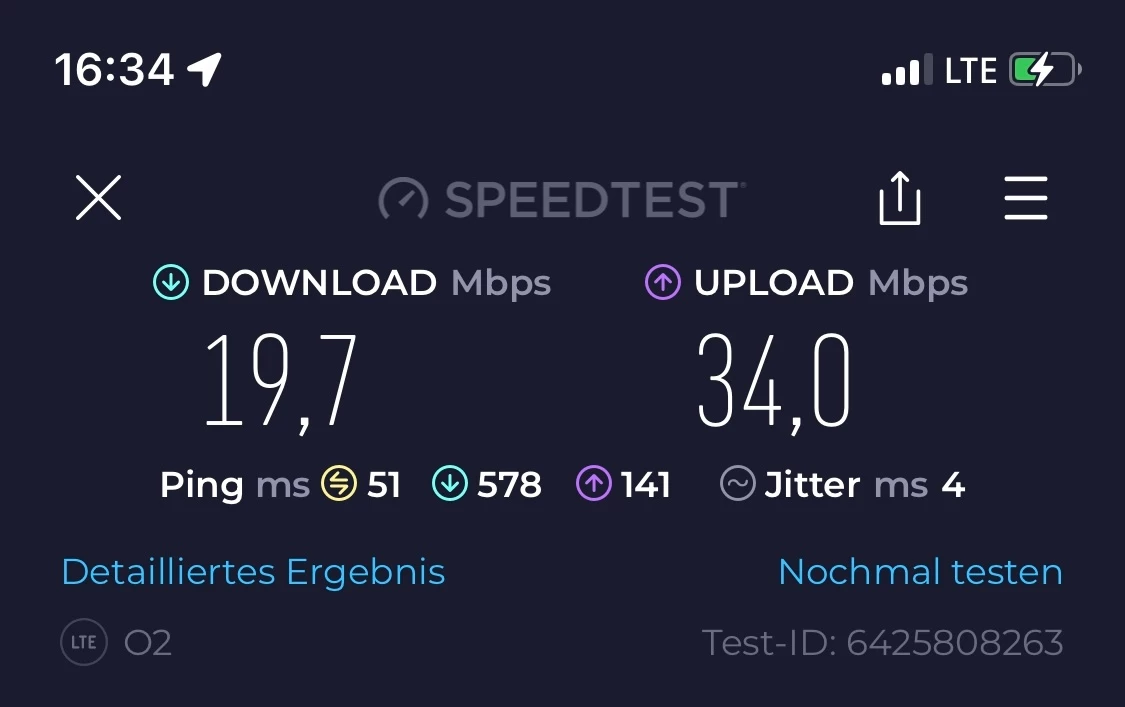 ich hab jetzt mal meine Drillisch-Sim in den Router gesteckt. Anbei die Ergebnisse. Weiterhin frage ich mich, warum mir Drillisch im o2-Netz mehr Downloadgeschwindigkeit liefern kann als o2 direkt.