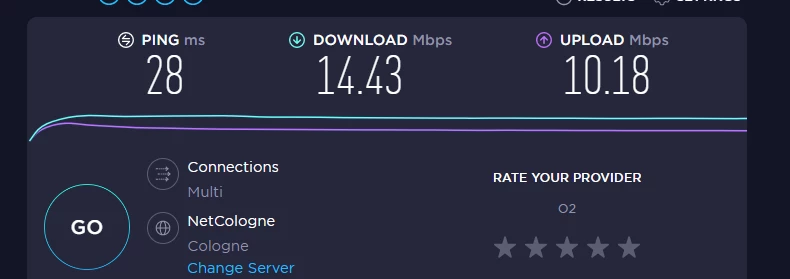 Kurzer Nachtrag , nachdem ich gestern zum ersten mal etwas gutes schreiben konnte , ist es Heute wieder komplette Katastrophe . Ping Zeiten von über 900 ms und geschwindigkeits Schwangungen von 25mbits runter auf 1 mbits und das im Sekundentackt .