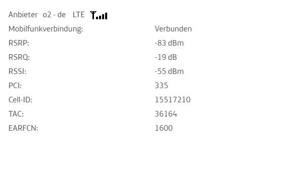 Durch ein anderes Modem (Fritzbox 6820) komme ich mittlerweile auch auf gute werte RSRP 82 dBm  und RSRQ -4 allerdings hat auch das nichts an der Situation geändert .