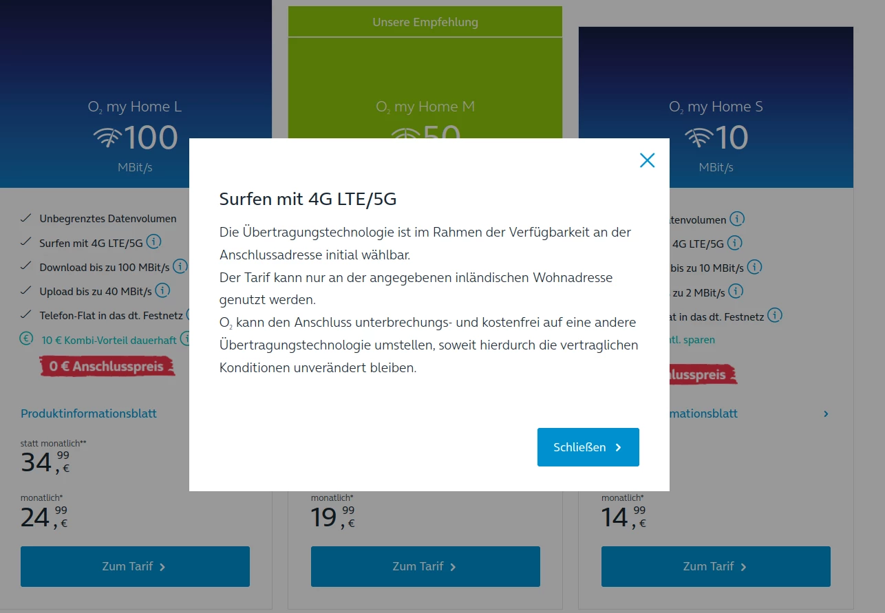 die Homespot-Tarife (My Home) sind nur an der festgelegten Adresse nutzbar.