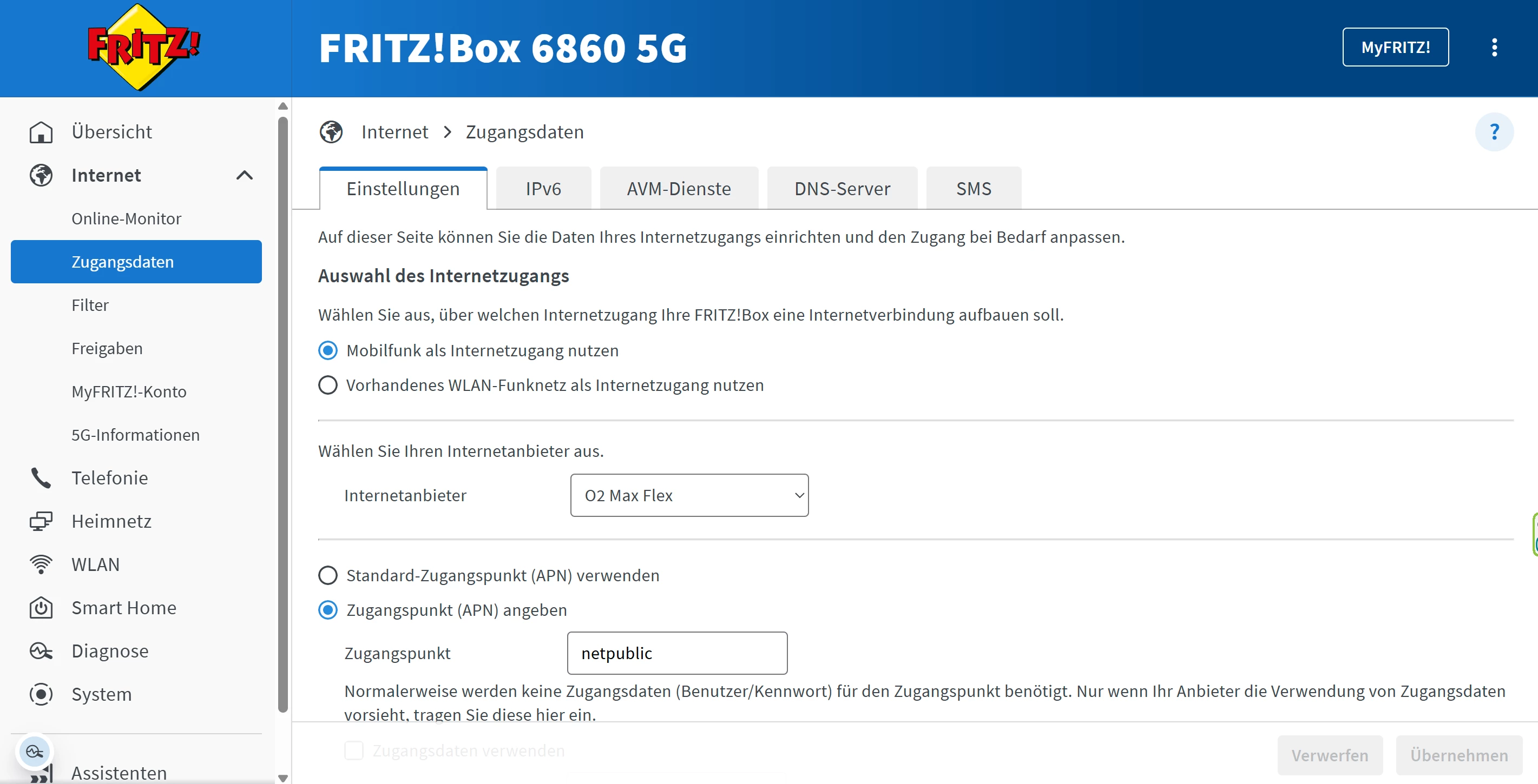 o2 mit Fritzbox 6860 5g ipv4 u. 6 einsellung probleme