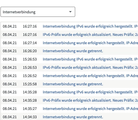 was für ein Gerät verwendest Du? Eine AVM 6850 ??? Hatte das Problem das die komplette Box neugestartet war 1-5 mal am Tag. Es kam bei mir sogar vor das die Box 3-6 mal hintereinander neugestartet war also kurz Internet und dann war sie wieder weg und wieder da.