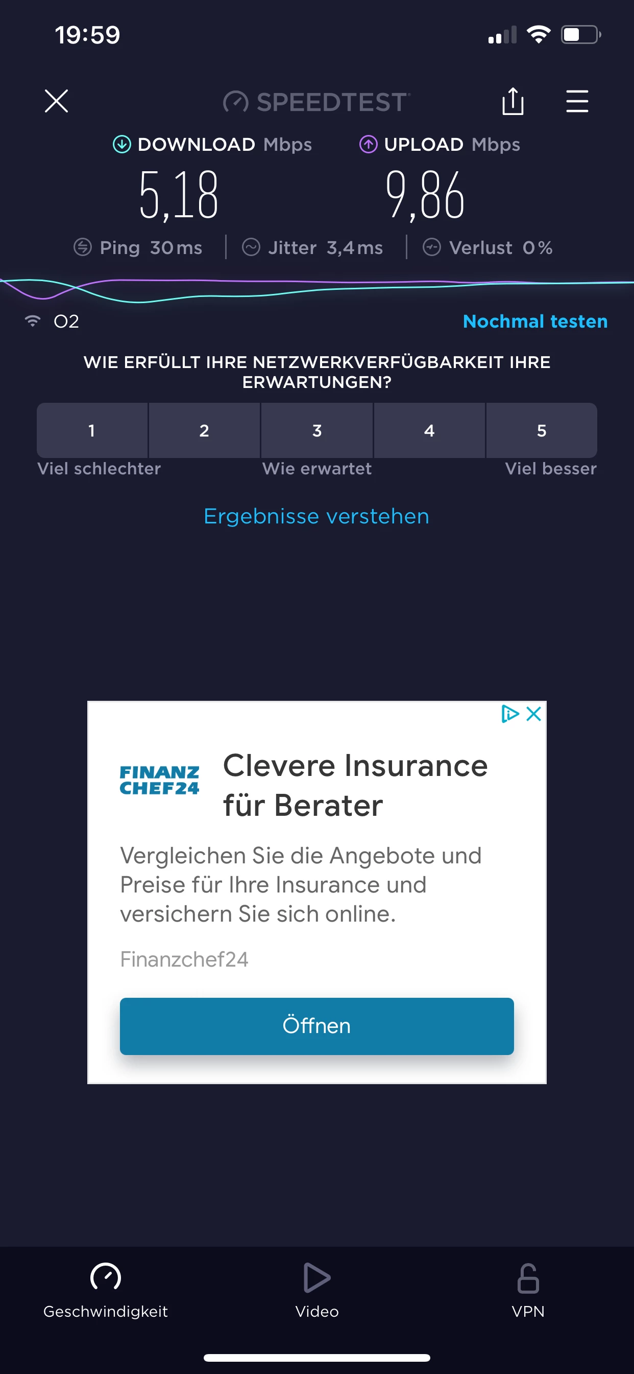 Abends wird es ja besser, wenn ich von der Arbeit komme, so gegen 17 Uhr, seit 2 Tagen fast nur 2 Mbps, gestern Abend so gegen 22 Uhr 55 Mbps. Da bei mir ja auch nicht mehr ankommen müsste doch die 6850 LTE Fritz ja perfekt sein oder? Luftlinie zum Mast ca. 1-2 km.