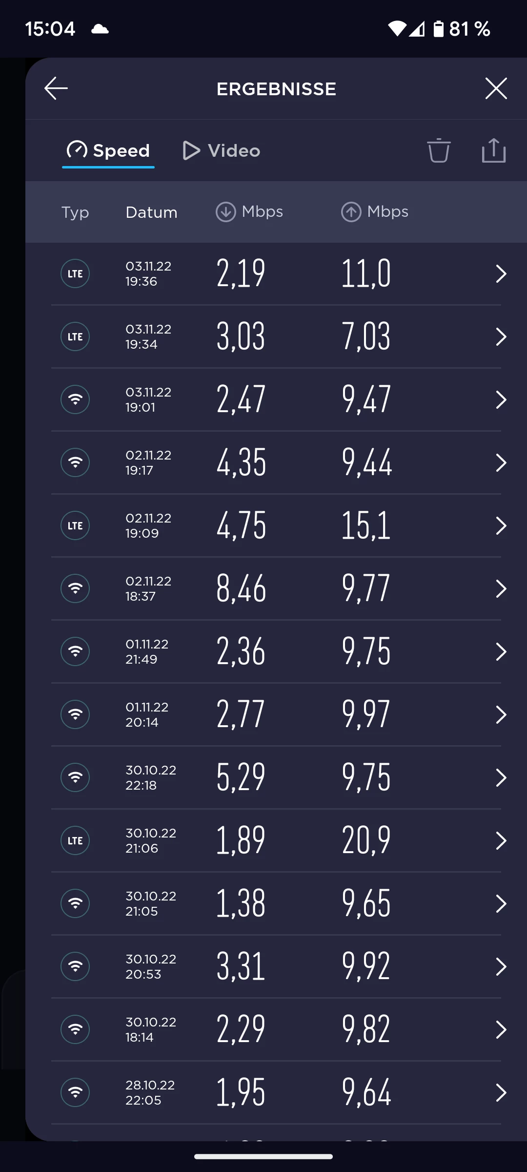 Habe die ergebnisse vom speedtest sogar beim O2 laden vorgezeigt, auch hier habe ich nichts bewirken können.