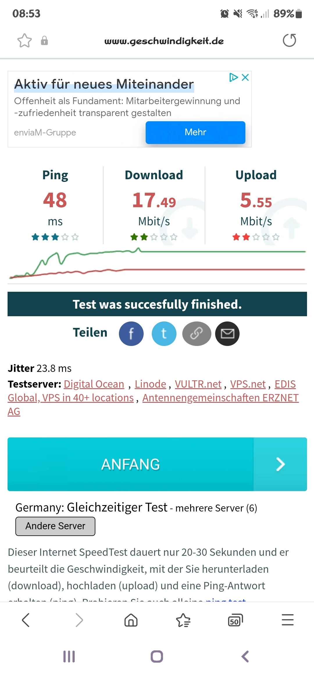 Wenn dir das alles nicht ausreicht und die avisierten Durchschnittsgeschwindigeiten nicht erreichst, solltest du Maßnahmen ergreifen und nicht mit einer Hotline telefonieren.