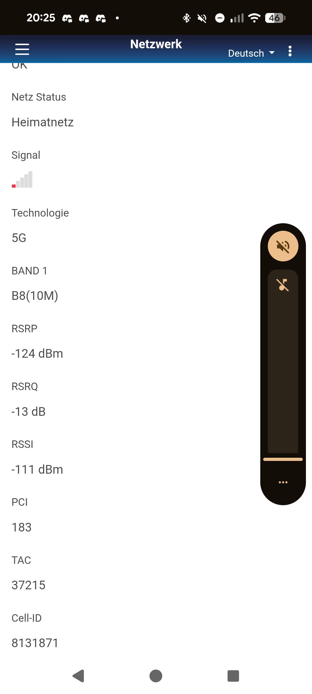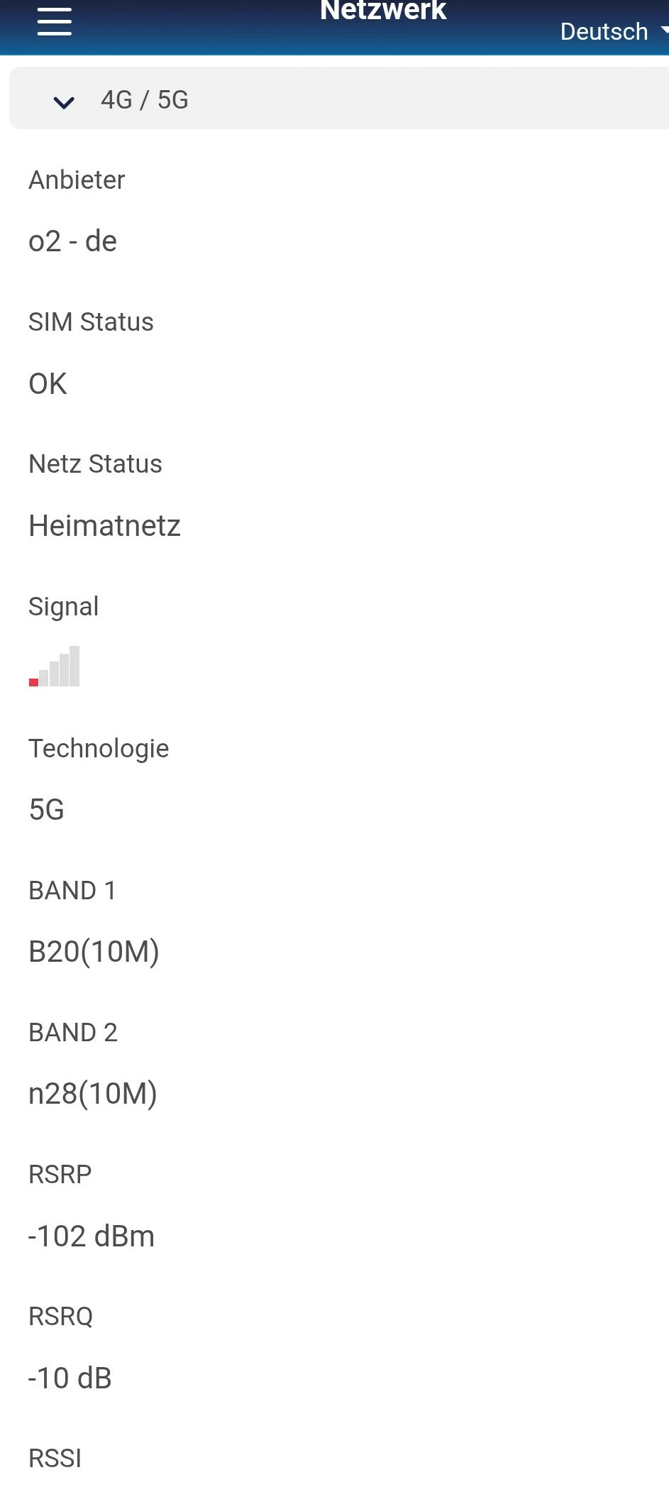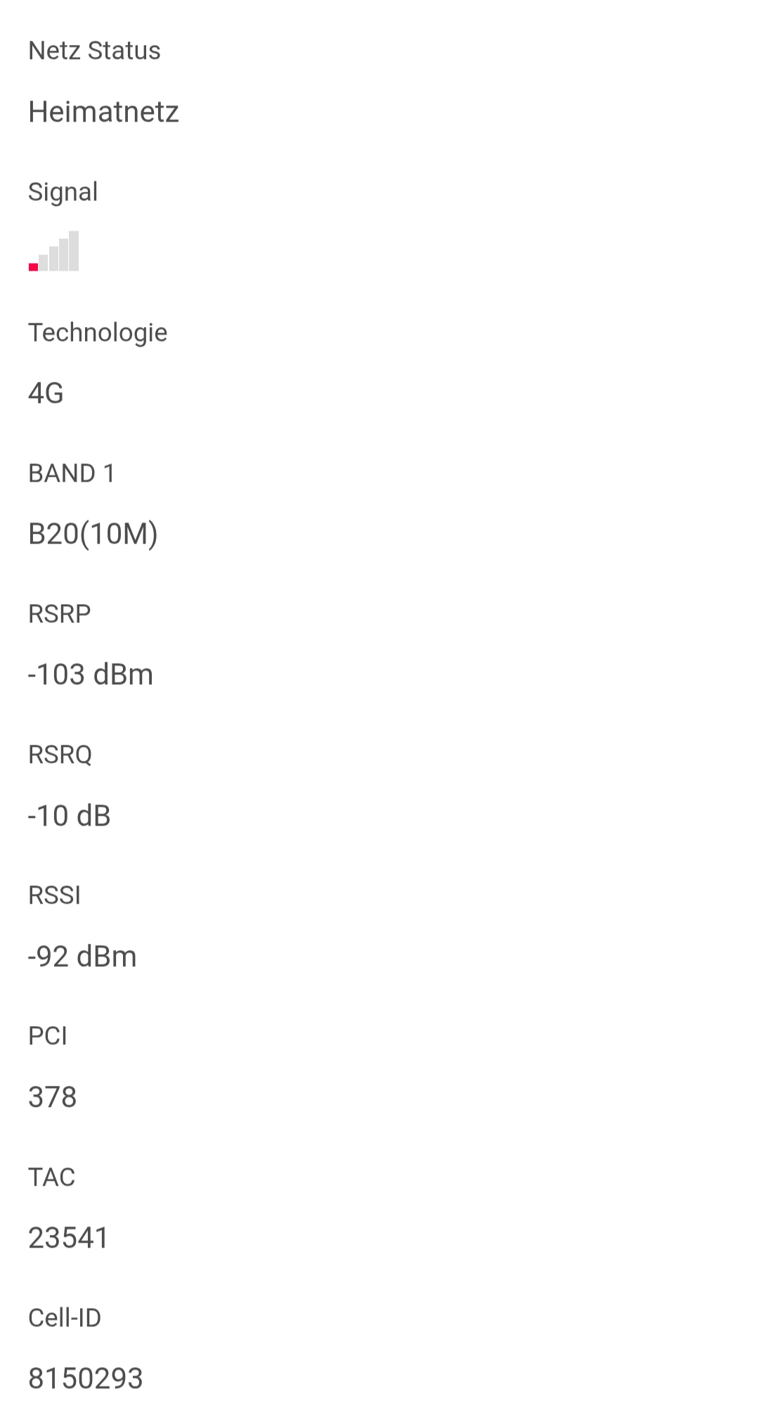 Dann liegt tatsächlich eine Störung vor. Du hast in Deinem Screenshot leider folgende Werte nicht mit einbezogen, als da wären PCI, TAC und die CellId. Da könnte man sehen, mit welchem Sendemast Du verbunden bist. Sei doch so gut und mache davon mal bitte (etwas runterscrollen!) ein Screenshot, dann kann ​@Tom_ Dir da genaueres zu schreiben.