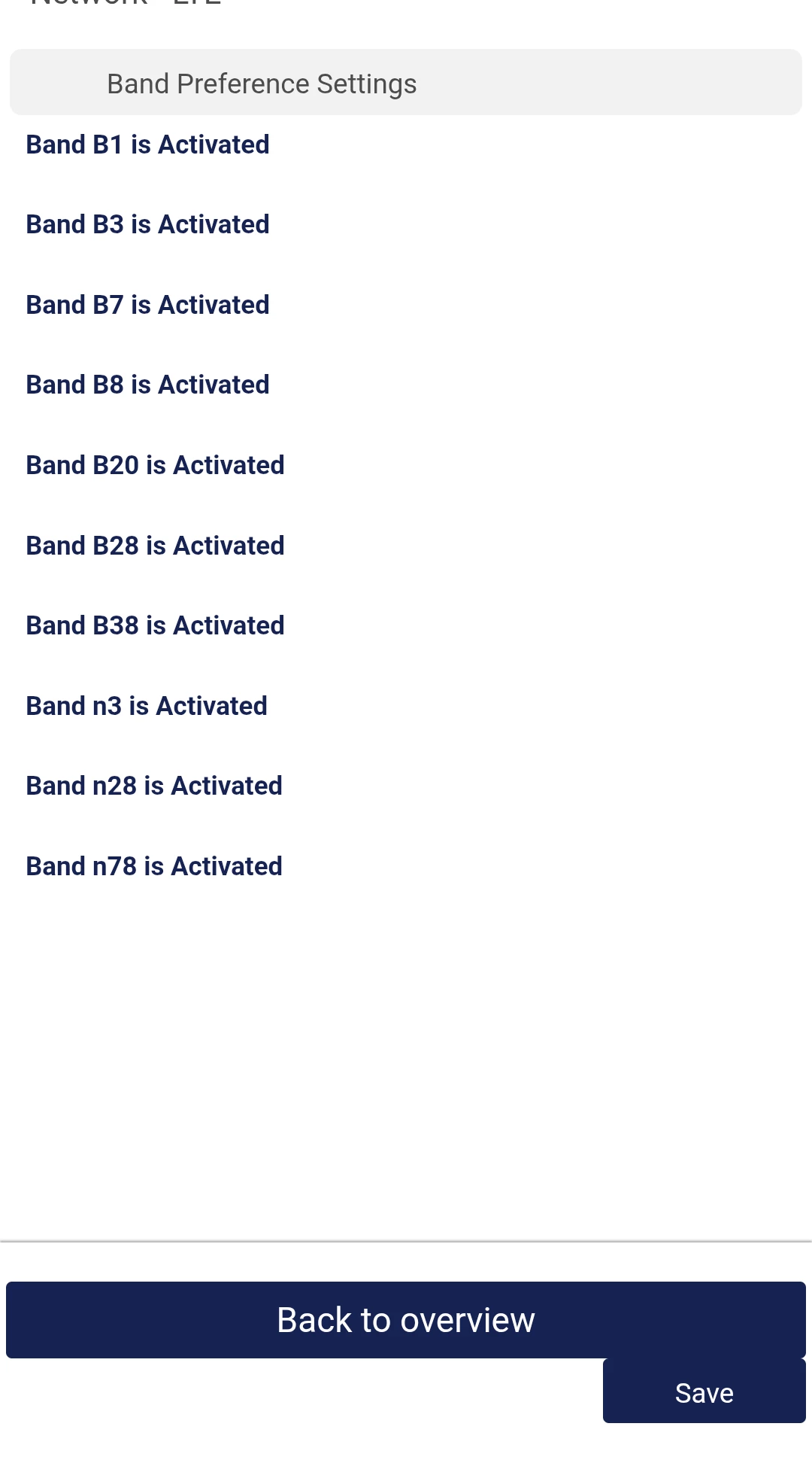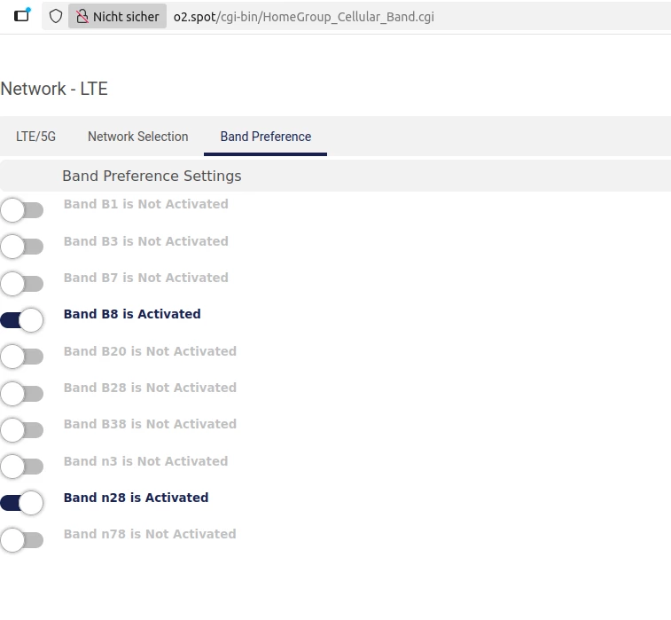 und bevorzugt das LTE Band 8 und 5G N28 auswählen? Das sollte dann so aussehen: