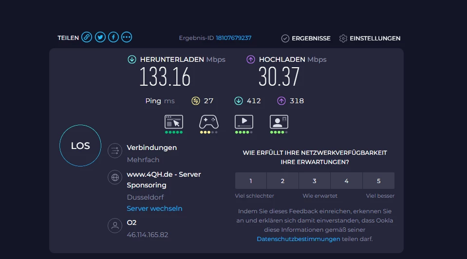 Speedtest kriegt er aktuell nicht hin, kommt immer “Prüfen Sie Ihre Internetverbindung”…. :(