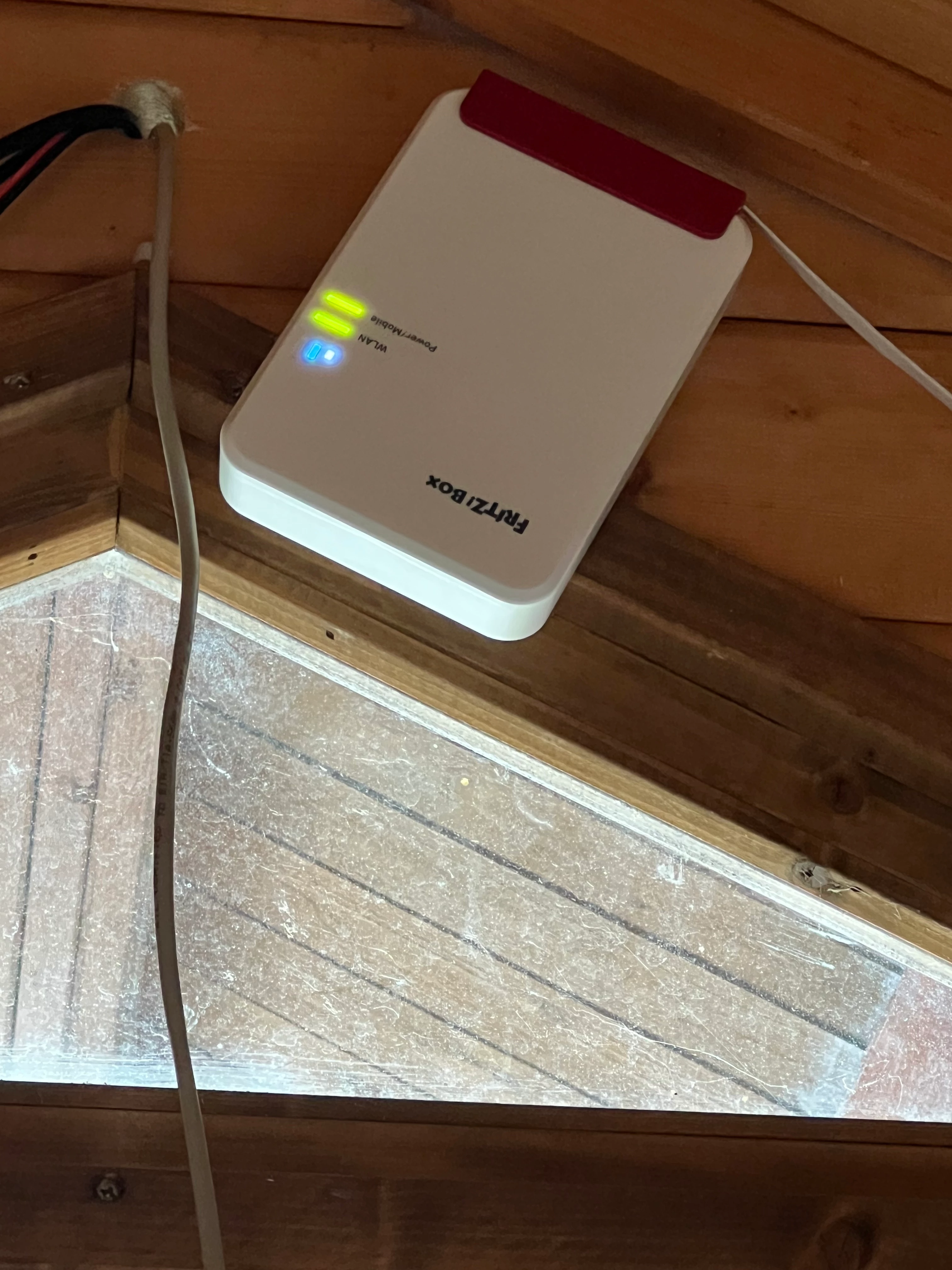 Die Fritzbox hast du provisorisch innen montiert, bis der neue Aufenthaltsort für die Box fertig ist?