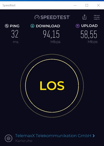 Was jetzt noch interessant wäre: eben ohne den Switch. Dann sollte ne 46 er IP rauskommen beim Speedtest. 😊