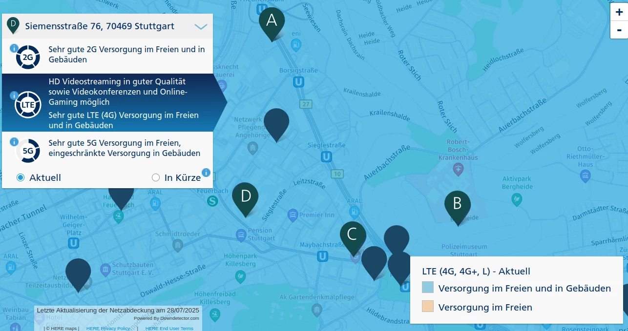 Das LTE kommt momentan von der Station bei “A”,