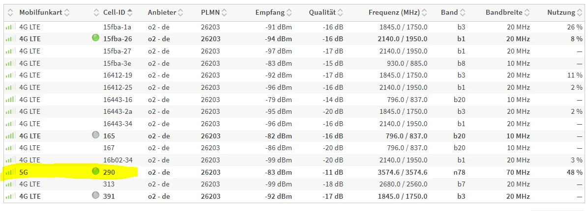 Soeben erstmal auf einen anderne 5G Mast verbunden: