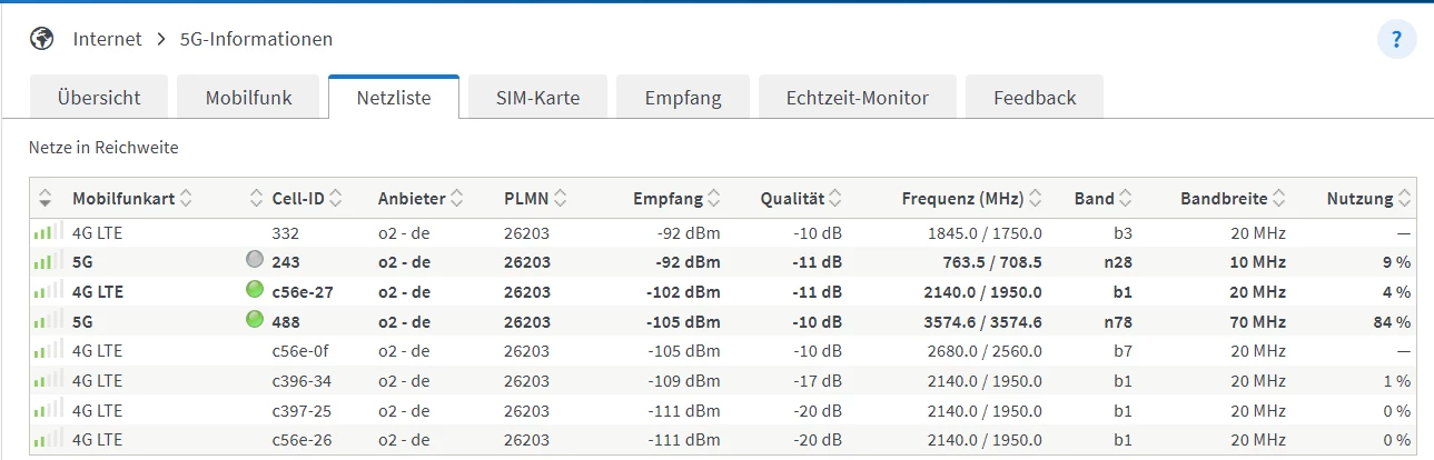 Und wenn du jetzt auf den entsprechen Masten klickst und die Angabe mit der in der 6860 5G vergleichst siehst du exakt wie du verbuinden bist.