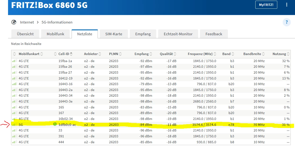 Was meine Fritte jedoch nocht nicht macht - im vergleich zu deiner ​@The_Voice_70 - ist, dass sie sich auf zwei 5G Netze verbindet. Ich meine das bei dir in einen deiner Screens gesehen zu haben.