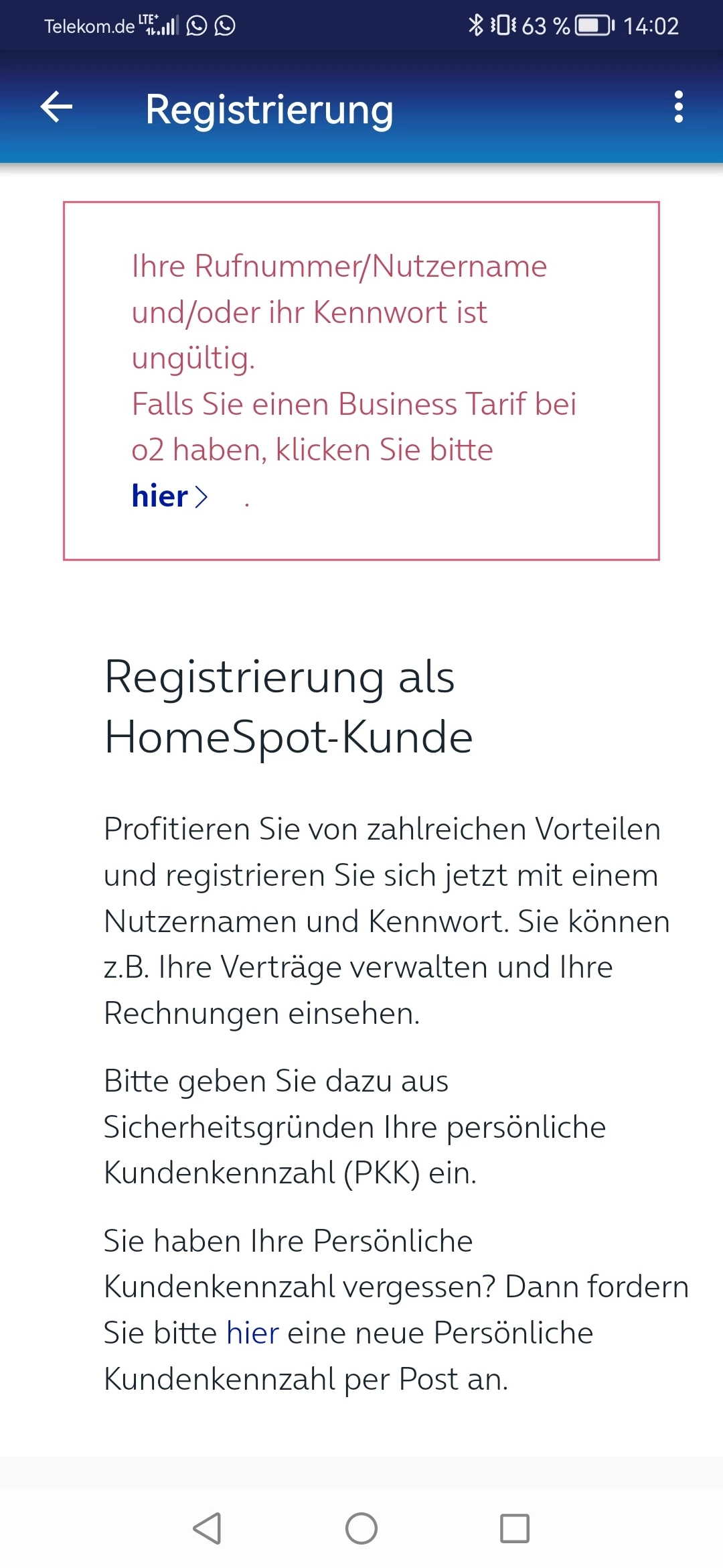 Registrierung nicht möglich und Freischaltung O2Homespot
