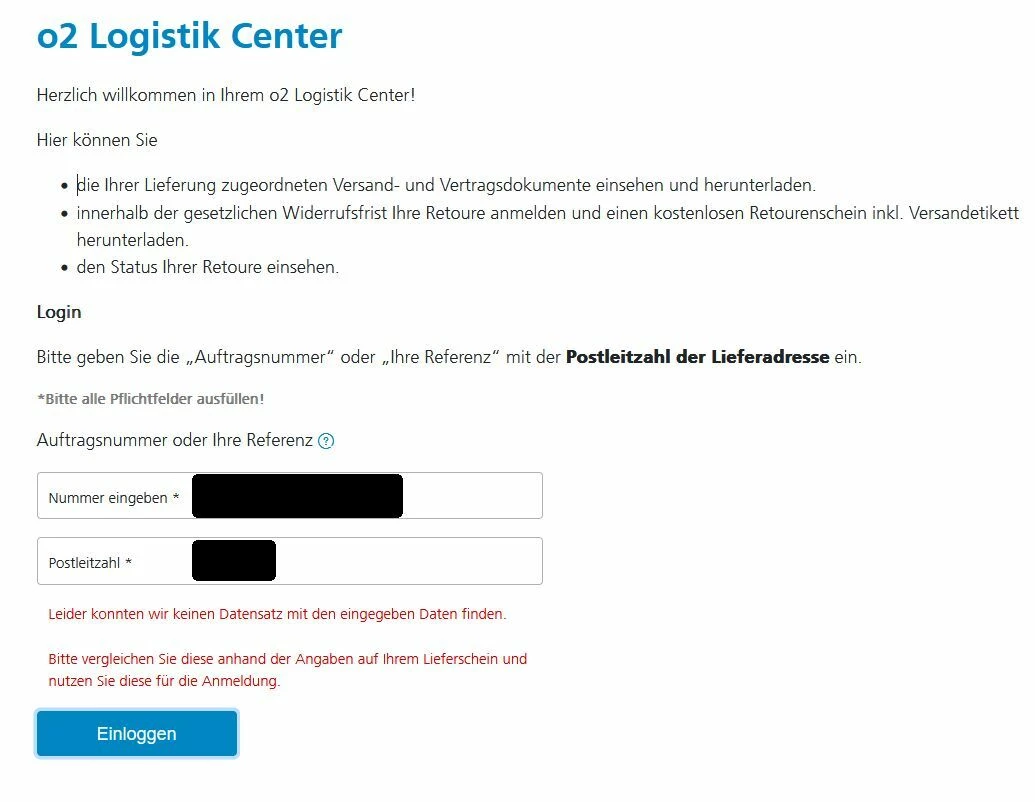 Hier kann ich angeben was ich will, (Auftragsnummer aus der E-Mail Bestätigung oder die EMEI des Gerätes wie in der Beschreibung steht. Was Allerdings “Ihre Referenz” sein soll, oder wo ich diese finden soll, ist mir auch ein Rätsel) es sagt mir jedes Mal: