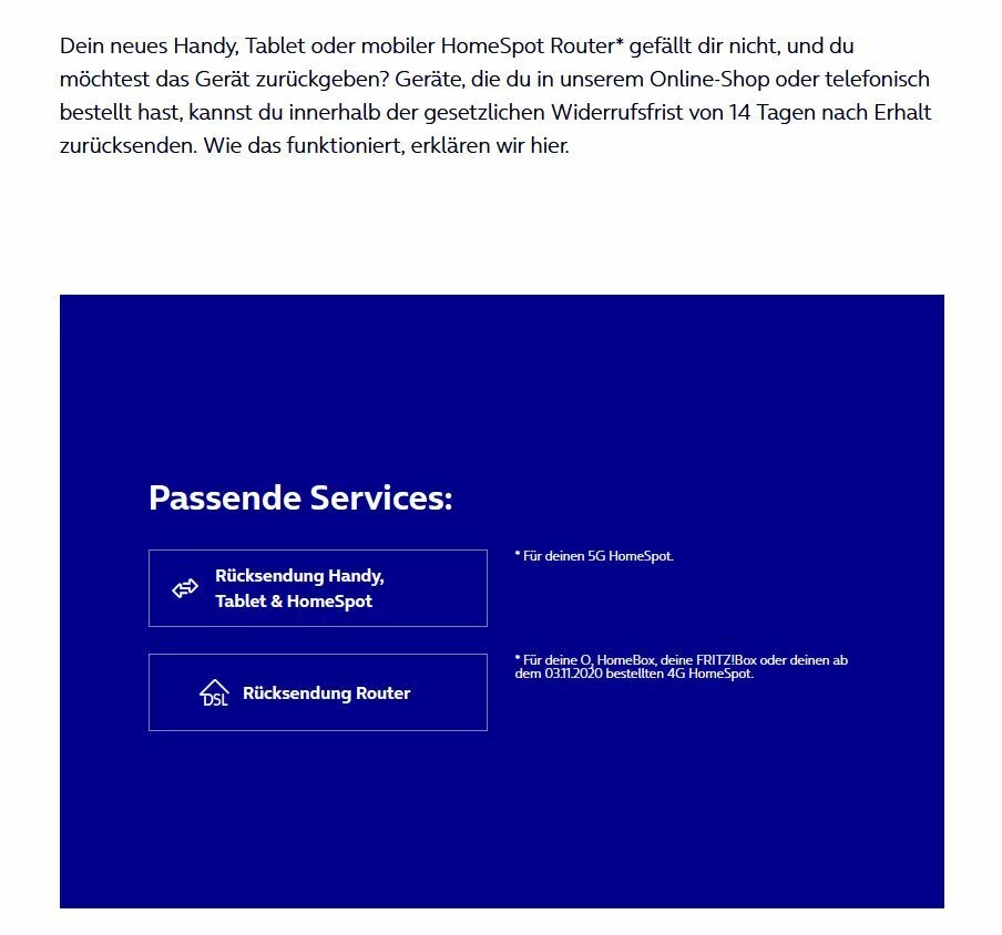 Und wenn ich dann “Rücksendung Handy, Tablet & Homespot” anklicke lande ich genau da was ich unter Punkt 2 im Anfangspost gepostet habe: