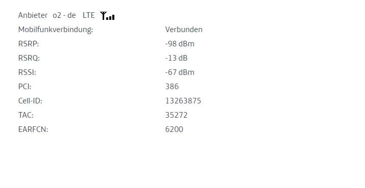 Die Empfangswerte sind nicht gerade optimal, und daher sollte es das Ziel sein, diese vielleicht erstmal zu verbessern, so dass eine stabile Verbindung und höhere Downloadraten möglich werden. Hast du Sichtkontakt zur Basisstation an der genannten Adresse?