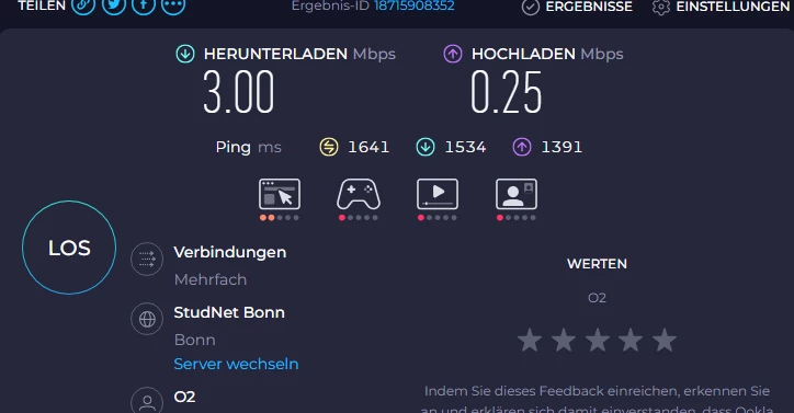 Auf 4G ist die Verbindung noch langsamer.