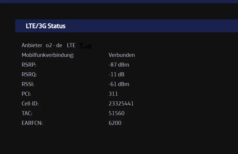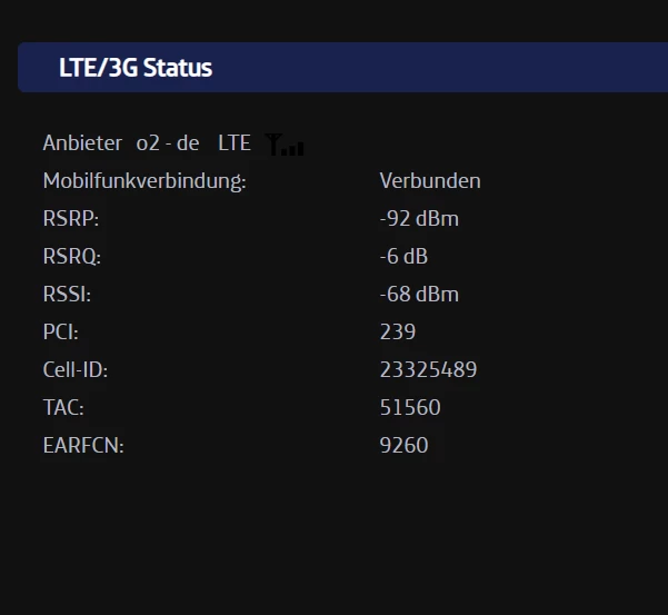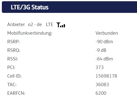 Hier in diesen Fall sind halt RSRP und RSRQ ziemlich schlecht, und daher geht es eher in Richtung von Positionierung des Homespots, oder LTE Antenne.