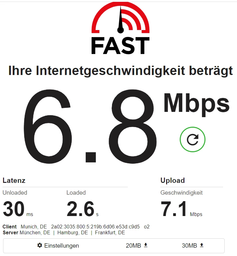 Kenne ich nur zu gut. Hab meiner Mutter den homespot nahe gelegt weil inet mit Handy gut lief. Großer Fehler. Home Spot jeden Tag min 1x neu starten sonst einen Download von 0,8mb sonst bei ca 15mb während mit Handy ca 30-50mb drin sind Upload sieht meist gut aus.