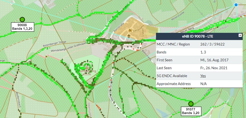Toms waches Auge liegt richtig, ungefähr dort wo das A im Screenshot ist war bis Nikolaus noch eine weitere LTE-Station, welche offenbar maßgeblich für euren Empfang war: